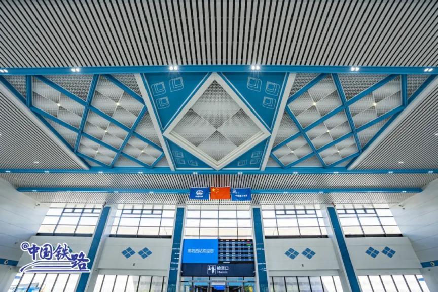 廊坊西站以临空经济区暴戾的“凤舞临空,国门钤记”为策画理念,外部策画以白色和蓝色为主色彩,与蓝天白云互相会通。